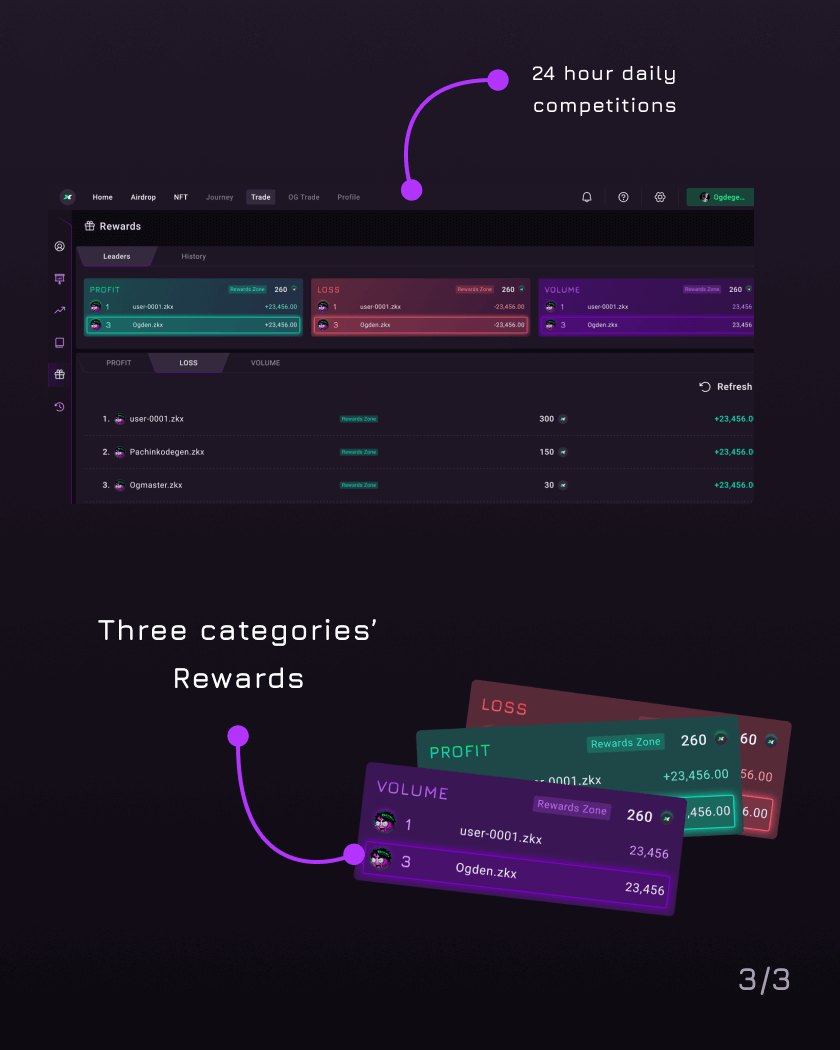 Get rewarded with $ZKX for every action on OG and Pro Trade with leaderboards and daily competitions.
